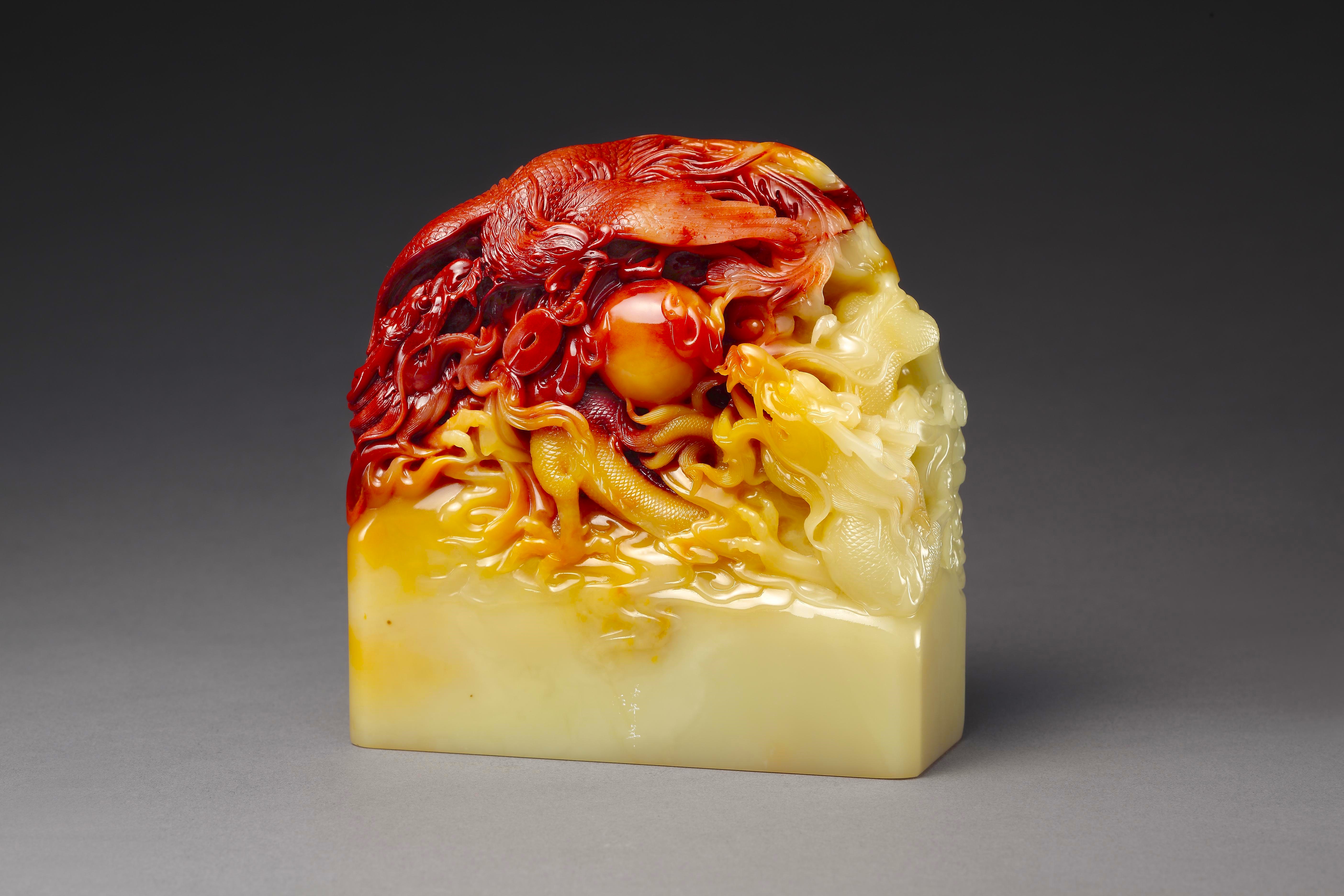 明代,壽山石的鈕飾藝術得到長足發展,雕刻藝人在繼承古代玉璽、銅印等鈕飾基礎上,造詣很高,風格獨特的印鈕藝術,壽山石章成了文人墨客們的心愛之物、珍藏之寶。