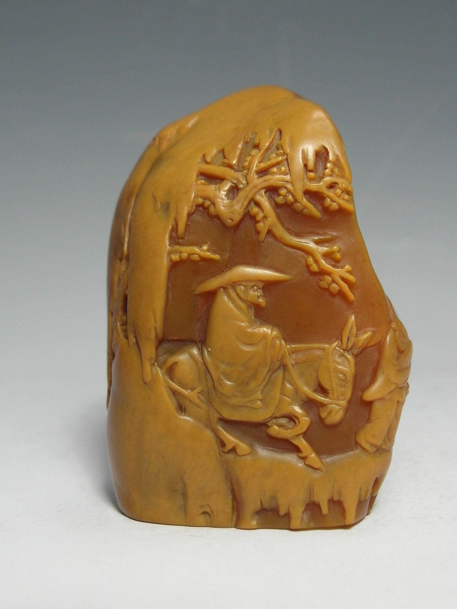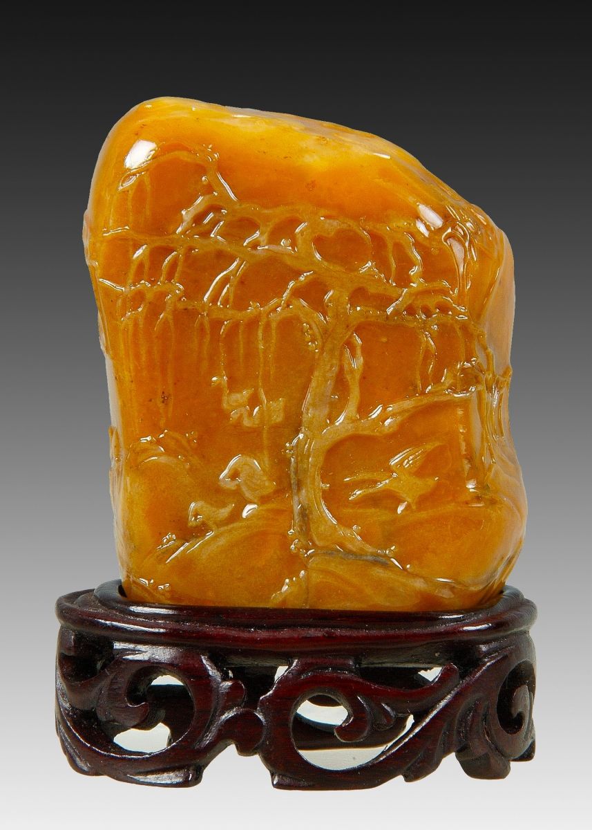 產於福建壽山的壽山石,是印章中的極品。田黃石是中國特有的“軟寶石”。全世界只有中國福建壽山的一塊不到一平方公里的田中出產,因色相普遍泛黃色,又產在田裏,故稱田黃石。其材質溫潤凝膩,在軟質雕刻石中居第一品。明、清各朝均被作作貢品獻入皇宮,被雕刻成御用璽印及藝術擺件,故田黃石又被尊為“石中之王”、“石帝”,故其身價無與倫比。從田黃石的屬性看,凡經雕鐫的藝術品,都可以當作文物看待,因為它不能複製,屬沒有再生性的藝術品。田黃石在歷代本來產量極低,經過數百年的不斷挖掘,到目前為止,已挖掘殆盡。歷代挖掘的田黃石,能流傳至今的,已成為稀世珍品,進入國內外的收藏機構。流散民間的,皆被藏家所珍藏。壽山石制印歷史,至少可溯源到晉朝的“零陵太守章”。
